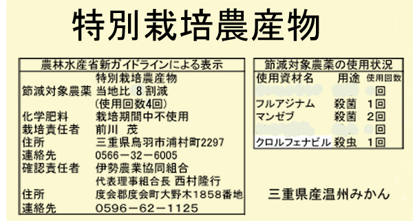 節減対象農薬と化学肥料双方の節減が必要です。 なお、節減対象農薬を使用しなかった場合、「節減対象農薬:栽培期間中不使用」との表示になります。 |